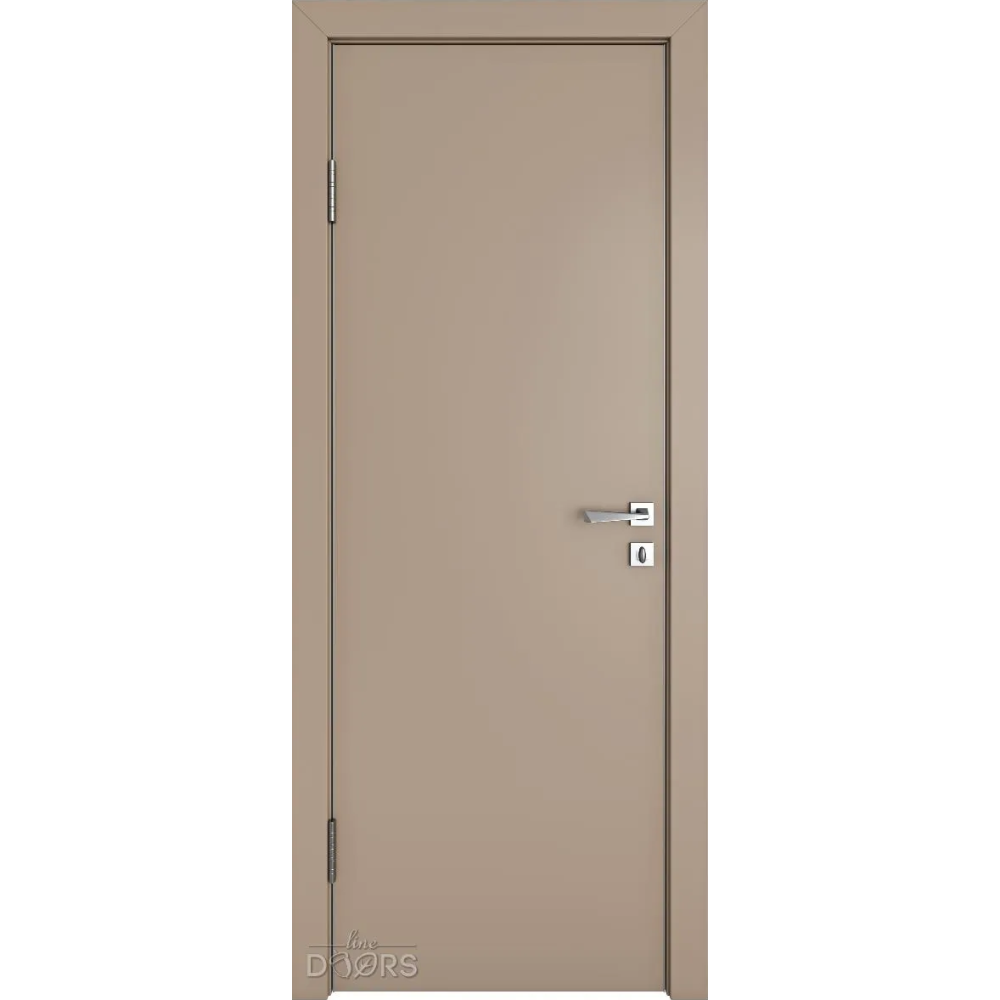 Дверное полотно оснащено алюминиевой кромкой с трех сторон (по вертикальным торцам и сверху) и магнитным замком под WC в базовой комплектации. Опционально возможна установка замка под ключ или отельную систему. Дверь универсальна для правого и левого открывания.
